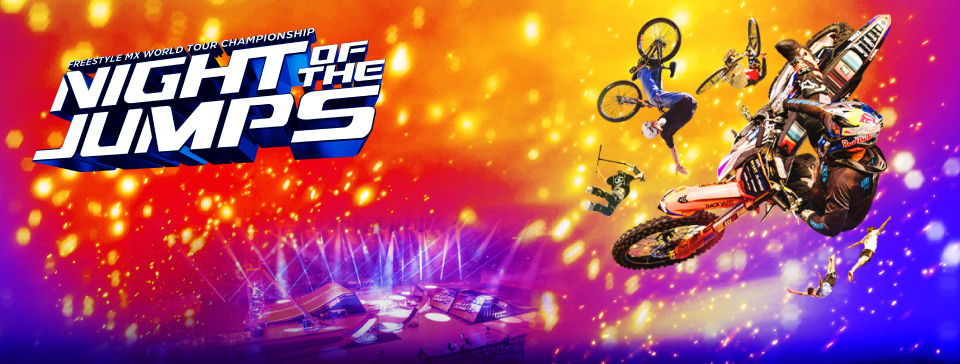 It's time for pure adrenaline and excitement when the NIGHT of the JUMPs Freestyle MX World Tour Championship 2026 comes to the arena. You can expect breathtaking stunts, an impressive light show and lots of pyrotechnics.