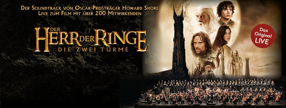 Die Oscar-prämierte Filmmusik von Komponist Howard Shore live aufgeführt zur vollständigen Original-Fassung des zweiten Teils der Trilogie „The Lord of the Rings“ von Rundfunk Sinfonieorchester Berlin, Chor und Solisten mit Großbild-Projektion und über 200 Mitwirkenden! „Der Herr der Ringe – in Concert Live to Film“ ist in direkter Zusammenarbeit mit dem Komponisten Howard Shore entwickelt worden und zeichnet sich als einzige von ihm autorisierte Produktion aus.